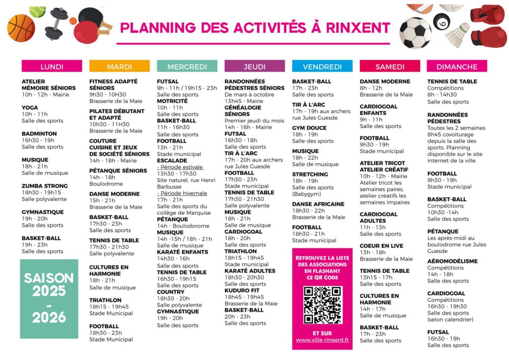 En un clin d’œil, retrouvez le planning des assocations de la semaine à Rinxent.