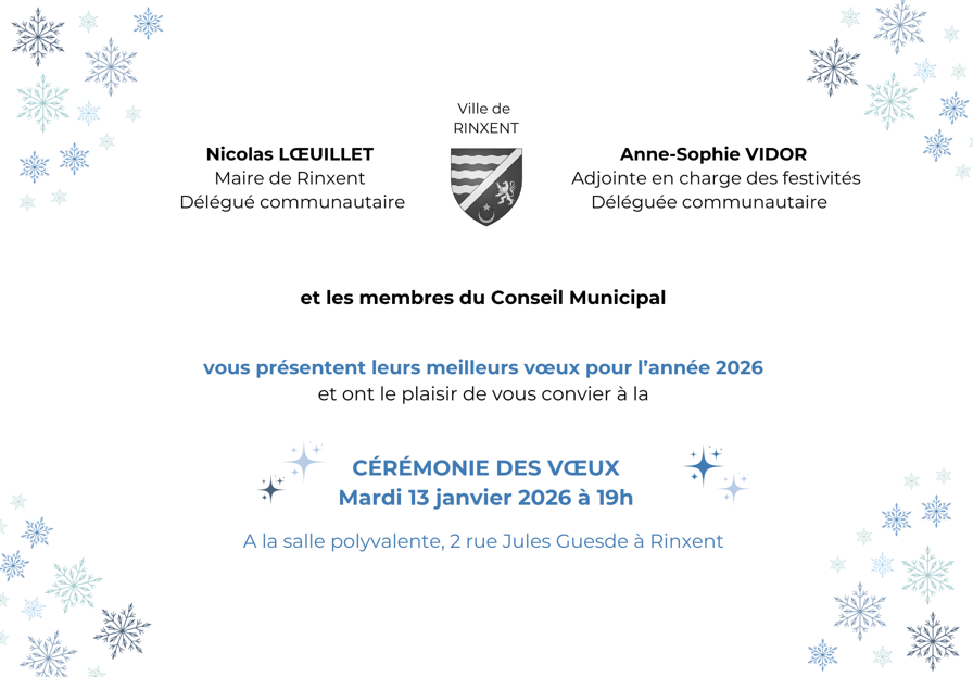 Cérémonie des vœux : Mardi 13 janvier à 19h